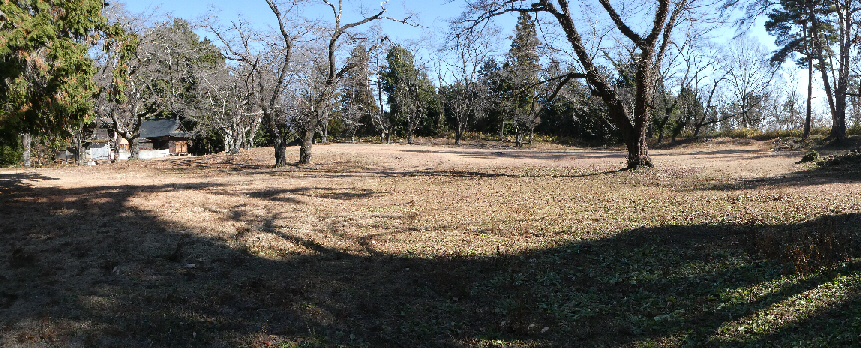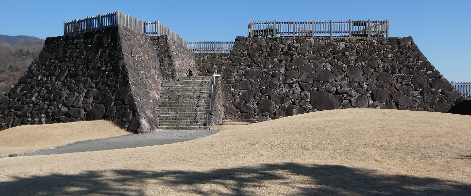 新府城へは中央線で新府駅向かい駅西口から緩やかな坂道を登って訳10分で本丸の急な石段に到着する。石段を息切らしながら上り本丸跡に到着する。右側の武田勝頼公零社へ向かう。本丸跡に回って広い芝生を眺める。春は桜が咲きお花見に良い場所だろう。下山は急な石段ではなく女坂をゆっくりと下る。